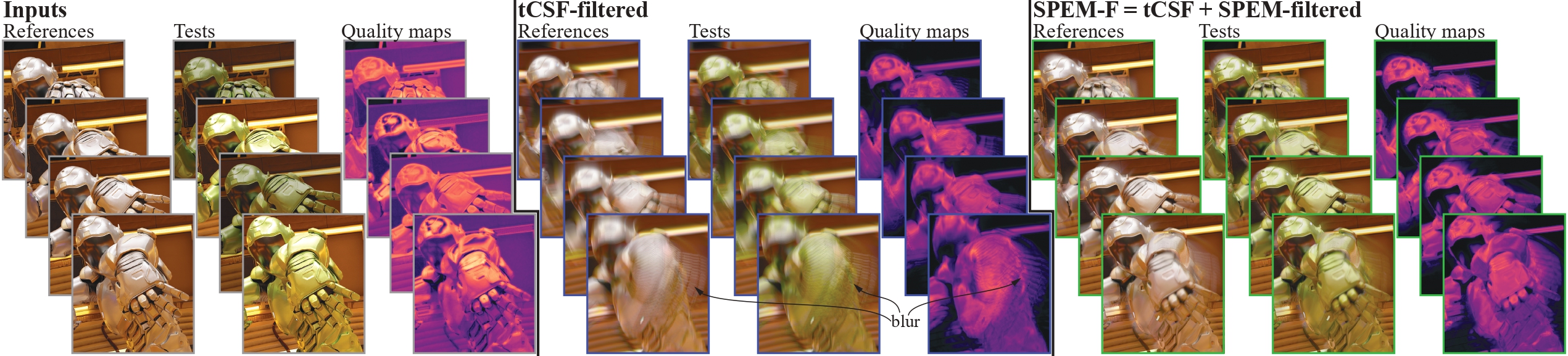 Pontus Ebelin, Yaru Liu, Niklas Sanden, Dounia Hammou, Daqi Lin, Tomas Akenine-Möller, Rafal Mantiuk, 2026 We present SPEM-F, a novel preprocessing filter that models smooth pursuit eye motion to convert any image or video metric into a perceptual video quality metric. Validated on a new 240-fps dataset, it physiologically simulates visual system latency, significantly improving prediction accuracy for temporal rendering artifacts and fast motion. |